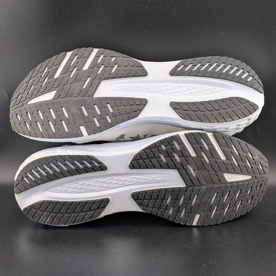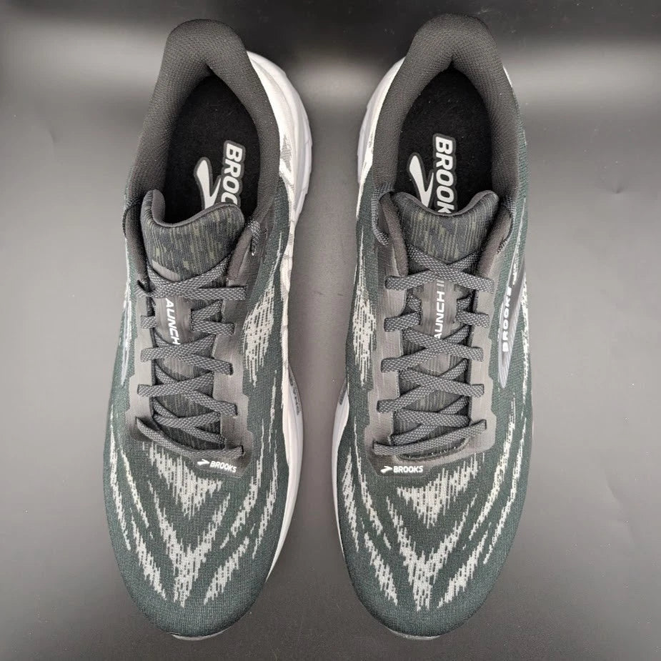 The product is a pair of Brooks Men's Launch 11 Road Running Shoes in size 14 Wide (2E). These shoes feature a Lace Up closure, Rubber outsole, and Lightweight DNA Flash foam cushioning for extra responsiveness. The shoes come in a stylish Black/White color with a low top design and mesh upper material. Perfect for various activities such as gym training, walking, or running, these athletic shoes by Brooks are designed for performance and comfort.