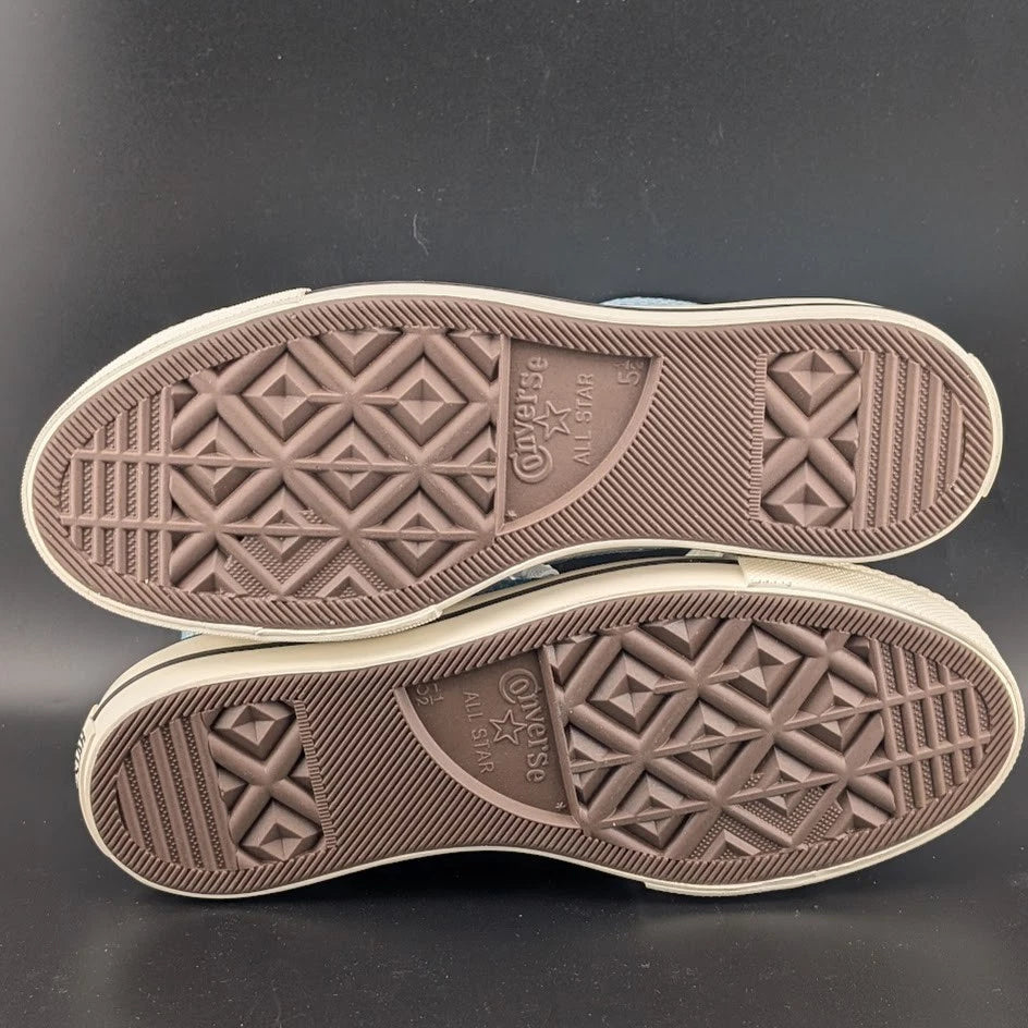 The Converse Chuck Taylor All-Star Lift Platform sneakers in Women's Size 7.5 Infinity Pool Blue are a stylish and versatile option for activewear or casual outings. Made with a durable canvas fabric and featuring a lace-up closure, these sneakers offer comfort and breathability with a cushioned foam insole and rubber outsole. The high-top design and colorful multi-color pattern add a fun and vibrant touch to your outfit, making them perfect for all seasons. Whether you're walking, weightlifting, or just out for a skateboarding session, these Converse sneakers are sure to be your go-to choice. New shoe without the original box.
