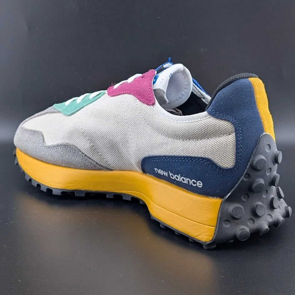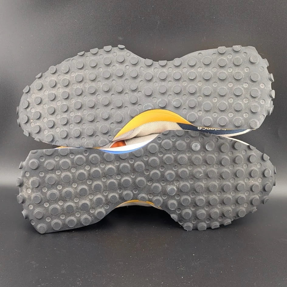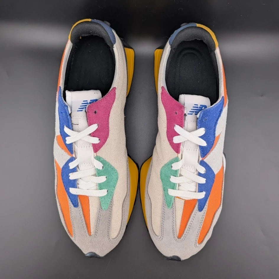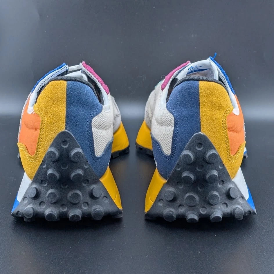 The Dejounte Murray New Balance 327 Shoes in Men's Size 11 feature a stylish design in Heat Up-Orange canvas and grey suede, with a low-top sneaker style. These athletic shoes offer comfort with features like cushioning and breathability, making them suitable for activewear occasions. With a rubber outsole and lace-up closure, these shoes offer stability and support for a range of activities, including gym training, running, and cross-training. The New Balance 327 model is part of the Cs7 product line and is a trendy choice for casual wear in all seasons.