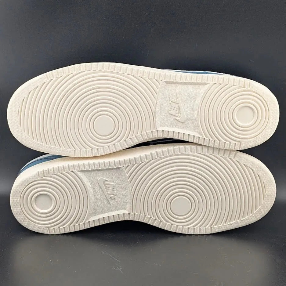 The Men's Nike Court Vision Low Size 12 in Smokey Blue/Sail is a stylish and versatile sneaker perfect for casual wear. Featuring a lace-up closure and a low-top shoe shaft style, this shoe offers a comfortable fit and breathability. The synthetic leather upper material, rubber outsole, and foam insole provide durability and cushioning for all-day wear. Designed for athletic activities like gym training and basketball, this Nike Court Vision model in solid blue color with a vision character design is a fashionable choice for any season.