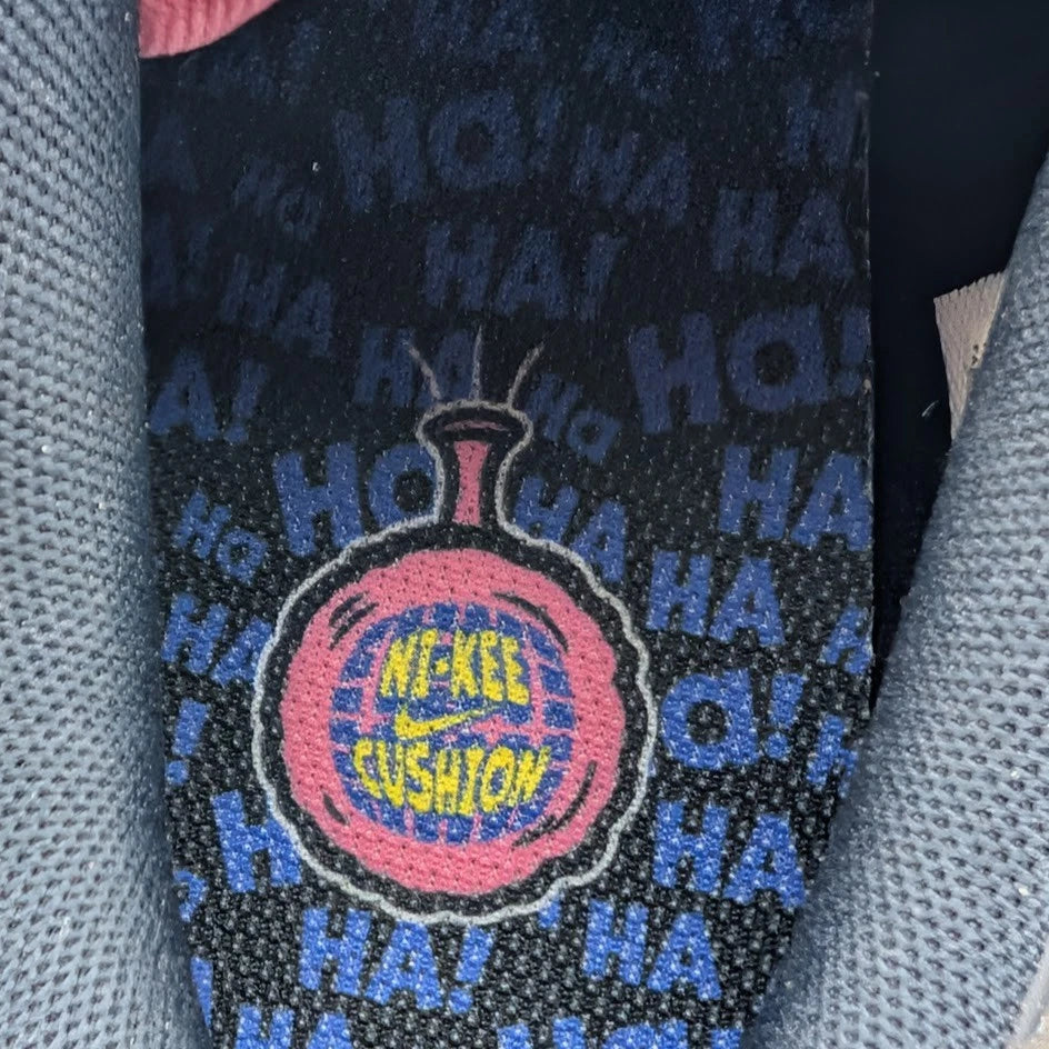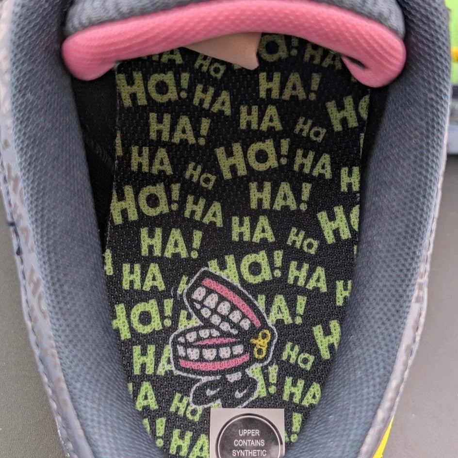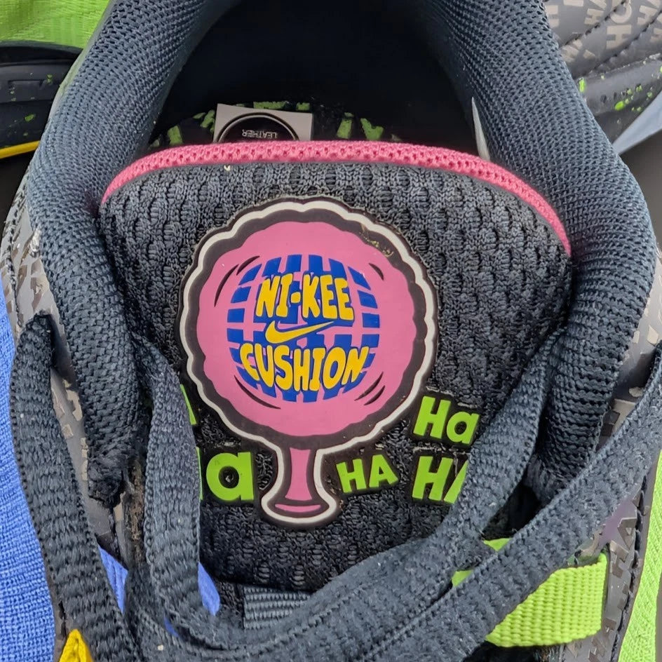 The Nike Zoom Freak Size 6.5 Youth and Mens/8.5 Women is a freakishly stylish and comfortable sneaker featuring a round toe shape, lace-up closure, and flat heel height. Made from a blended fabric with a rubber outsole, this shoe is perfect for both kids and adults. The shoe is accented with the Nike logo and comes in a vibrant blue, yellow, green, and black color scheme inspired by the Joker character. Designed for athletic activities like school and basketball, this Nike Zoom Freak 5 model offers moderate cushioning and is a must-have for those looking for both style and performance.