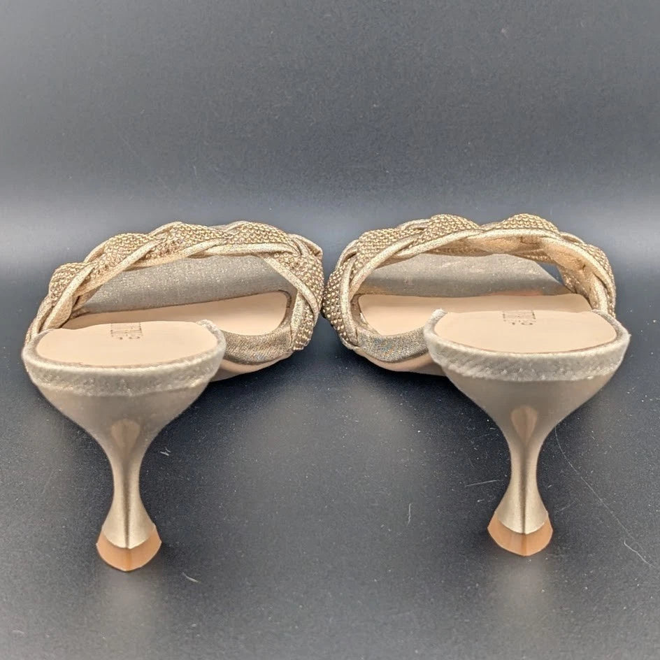 These Women's Size 10 low kitten heel sandals feature a Square Toe Braided Rhinestone design, making them perfect for various occasions from casual to formal. The slip-on style and comfortable features like a thermoplastic rubber outsole and gel insole make them ideal for all-day wear. The rhinestone accents add a touch of glam to the bronze color, making them a stylish choice for parties, weddings, or even traveling.