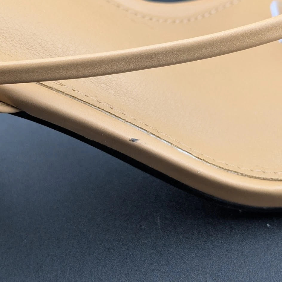 The right sandal has a little mark or nick on the side of the insole. Please review all the pictures so you know what you are buying.